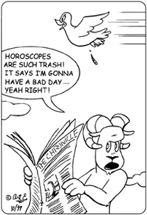 These are my first two published comic strips of my Astrology Tales, for the Staten Island Muse, a newsletter in S. I.